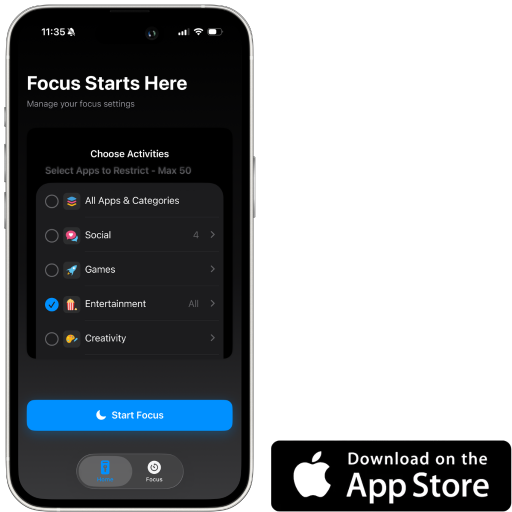 Simply press start focus, and your apps will be locked. It is recommended to put your Focus Card somewhere out of mind.